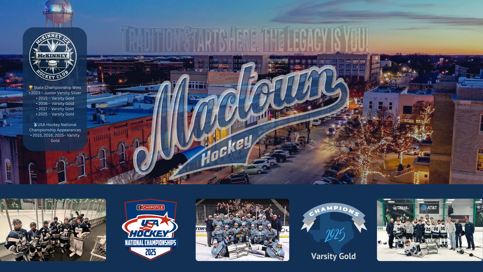 Since 1996, McKinney Ice Hockey has been building on a tradition and a legacy founded in competition, sportsmanship, and a commitment to excellence on and off the ice.