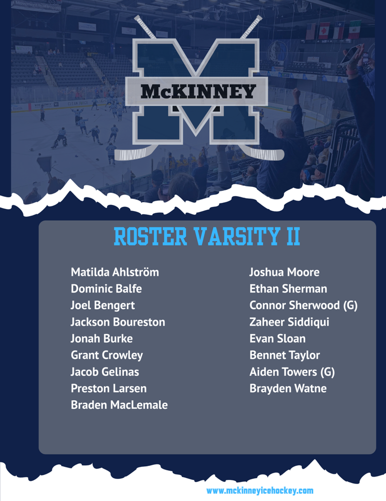 We are proud of the effort and dedication these athletes have shown during preseason training and look forward to seeing them compete. Congratulations to the players selected for the 2025–2026 McKinney Ice Hockey Varsity II roster!