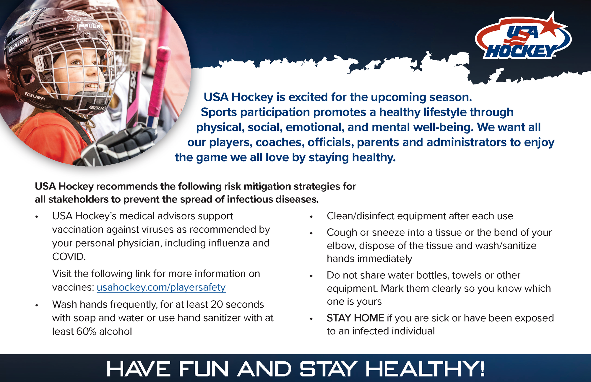 USA Hockey’s medical advisors recommend vaccination against COVID-19, but understand this is a personal choice. The following educational materials are provided to help you make an informed decision: