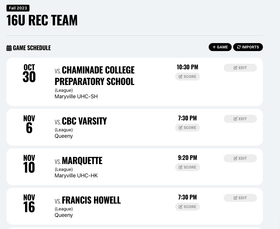 - When adding events, the system will ask for a location and will attempt to pre-fill the address with information from Google; this can be overridden for events that with TBD details, and you will be able to edit those details for the event when the details are available (helpful for tournaments).