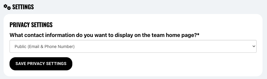 - If you need to update your privacy settings, please navigate to your Team Page > Settings, where you can control what contact information is displayed on your team page: