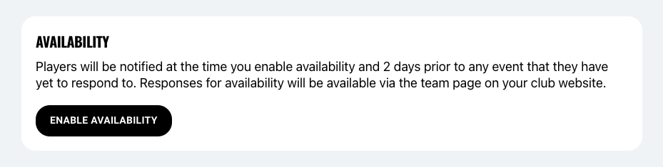 - There is an option to enable Availability tracking for players; players/parents are the only ones who can update their Availability status for each event.