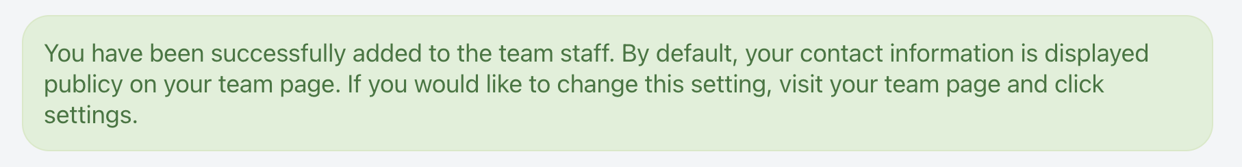 - When you accept the invitation to join your team as a staff member, you'll see the below message: